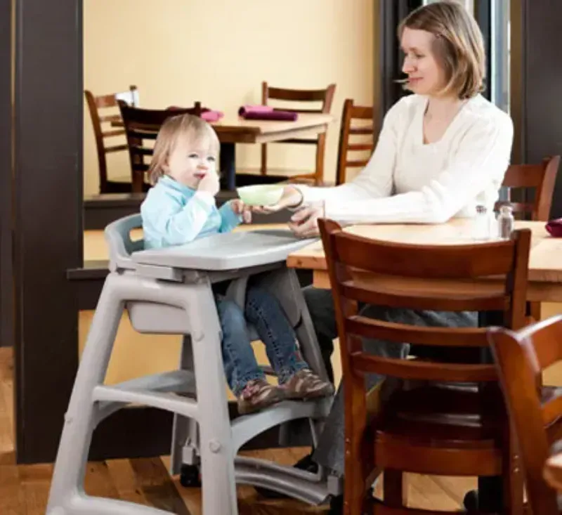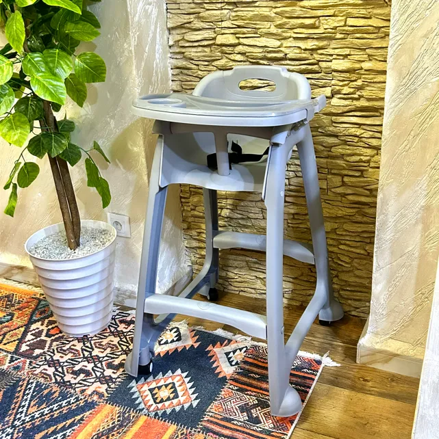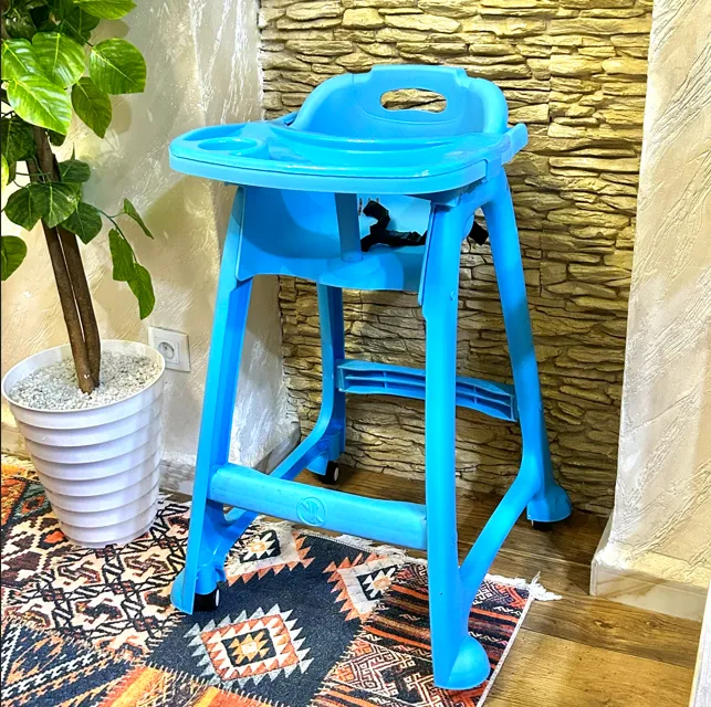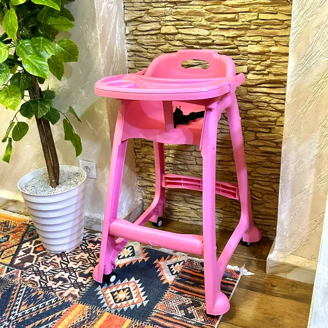 كرسي عملي و مريح للبيبي تاعك، فيه طابلة و عجلات و يتنظف بسهولة 👌