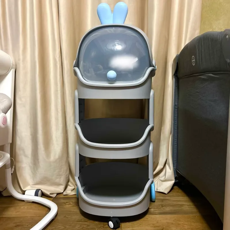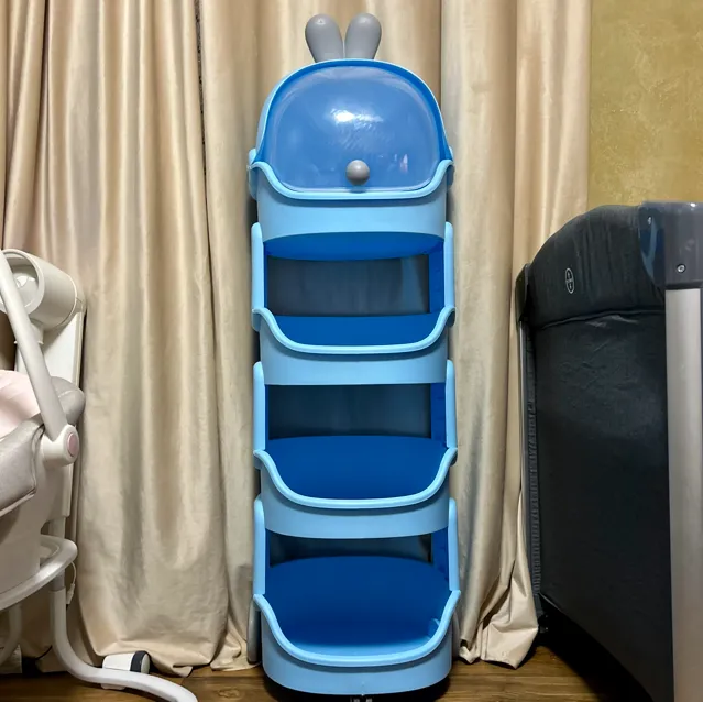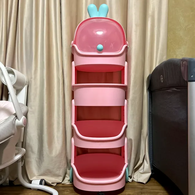 رف بلاستيك عملي بزاف، فيه 3 ولا 4 طبقات باش تنضمي كل مستلزمات البيبي 🎀💕